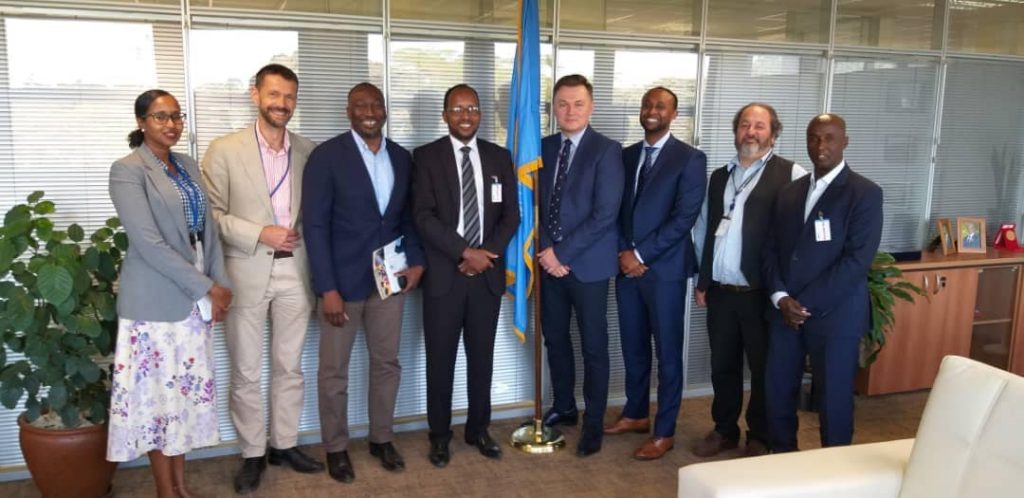 Wasiirka Wasaaradda Hawlaha Guud, Dib u dhiska & Guriyeynta DFS Mudane Cabdi Aadan Hoosow oo hawlo shaqo u jooga magaalada Nairobi ee dalka Kenya ayaa waxa uu shirar gaar gaar ah layeeshay madaxda Midowga Yurub EU & Haayadda UNOPS