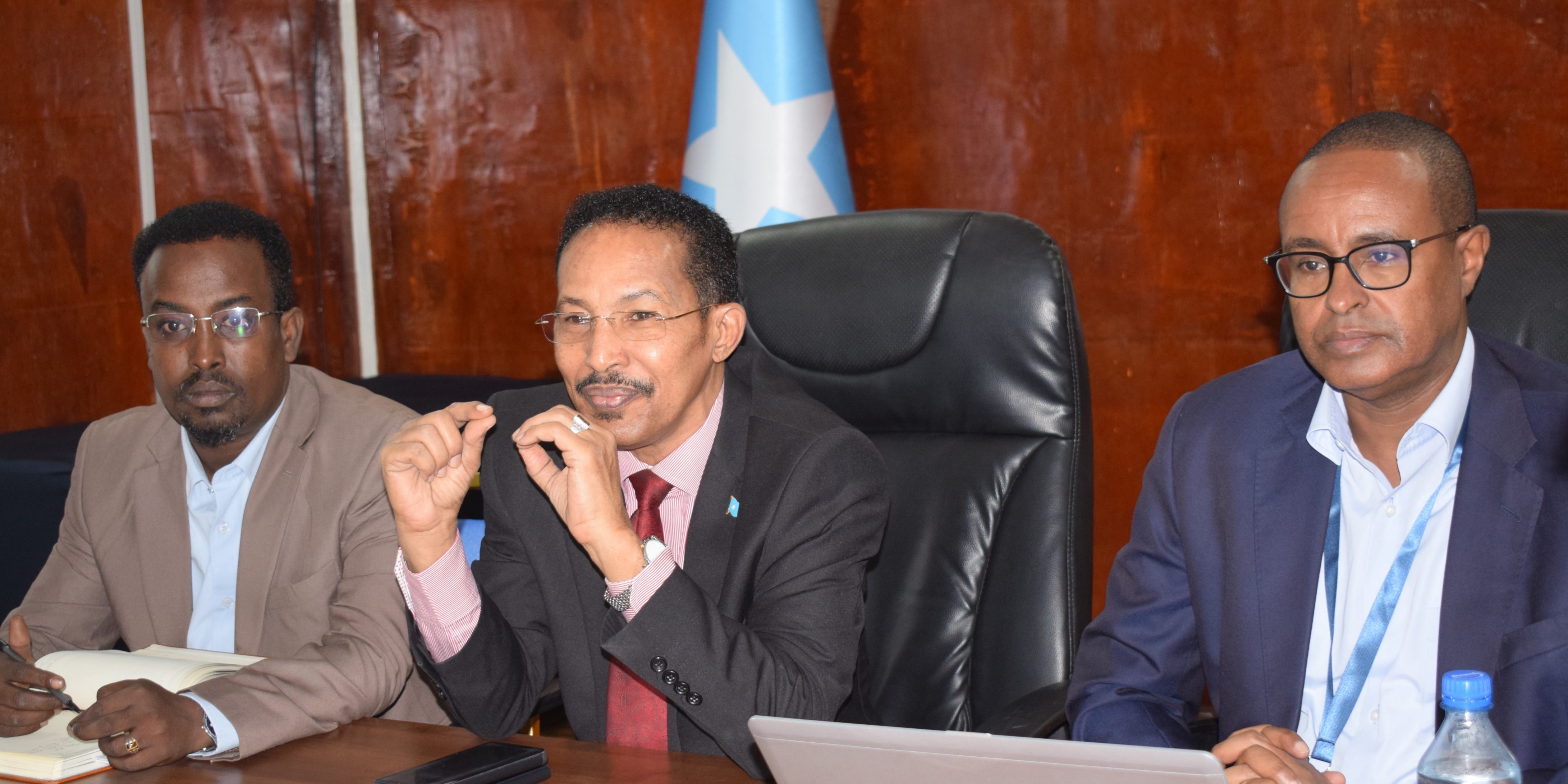 Muqdisho, 10, 02 2020: Wasiir kuxigeenka Wasaaradda Hawlaha Guud, Dib u dhiska iyo Guriyeynta XFS Mudane Jamaal Xasan Ismaaciil ayaa maanta magaalada Muqdisho ka daahfuray shir muhiim ah oo u dhexeeya Wasaaradda Hawlaha Guud DFS, Wasaaradaha Hawlaha Guud ee Maamul Goboleedyada Dalka & Bangiga Horumarinta Afrika.