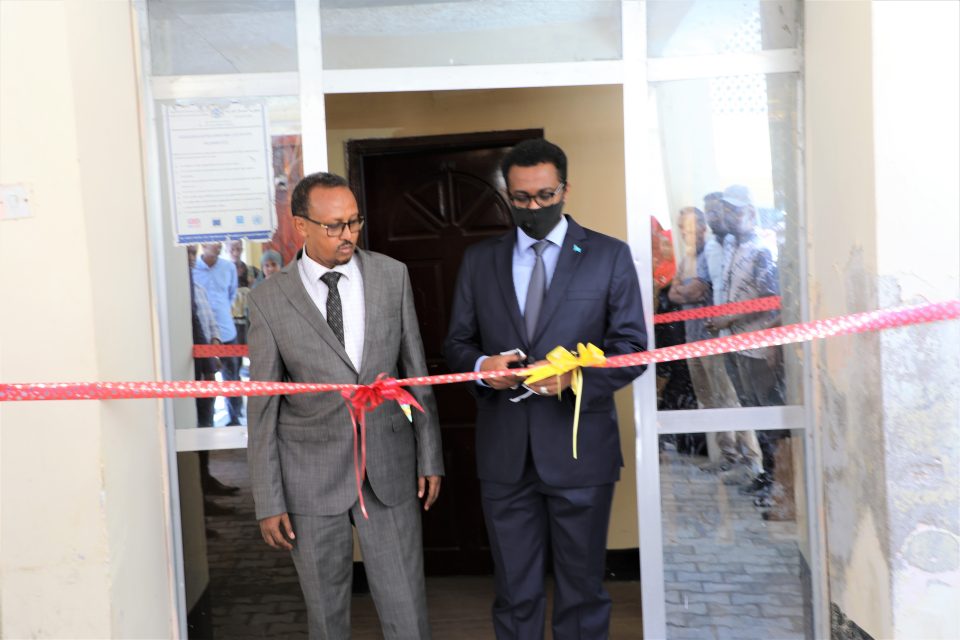Muqdisho, Nofeembar 16, 2021; Wasiirka Wasaaradda Hawlaha Guud, Dib u dhiska & Guriyeynta XFS Xil. Maxamed Aadan Macalin (Soomaali) oo uu wehelinayey Wasiirka Wasaaradda Amniga XFS Mudane C/laahi Maxamed Nuur, Masuliyiinta Shirkadda dhisaysa Wadada Muqdisho iyo Jawhar, Taliyaha Booliska Gobolka Banaadir iyo Injineero kasocday Wasaaradda Hawlaha Guud ayaa manta kormeer ku tagay dhismaha Wadada isku…