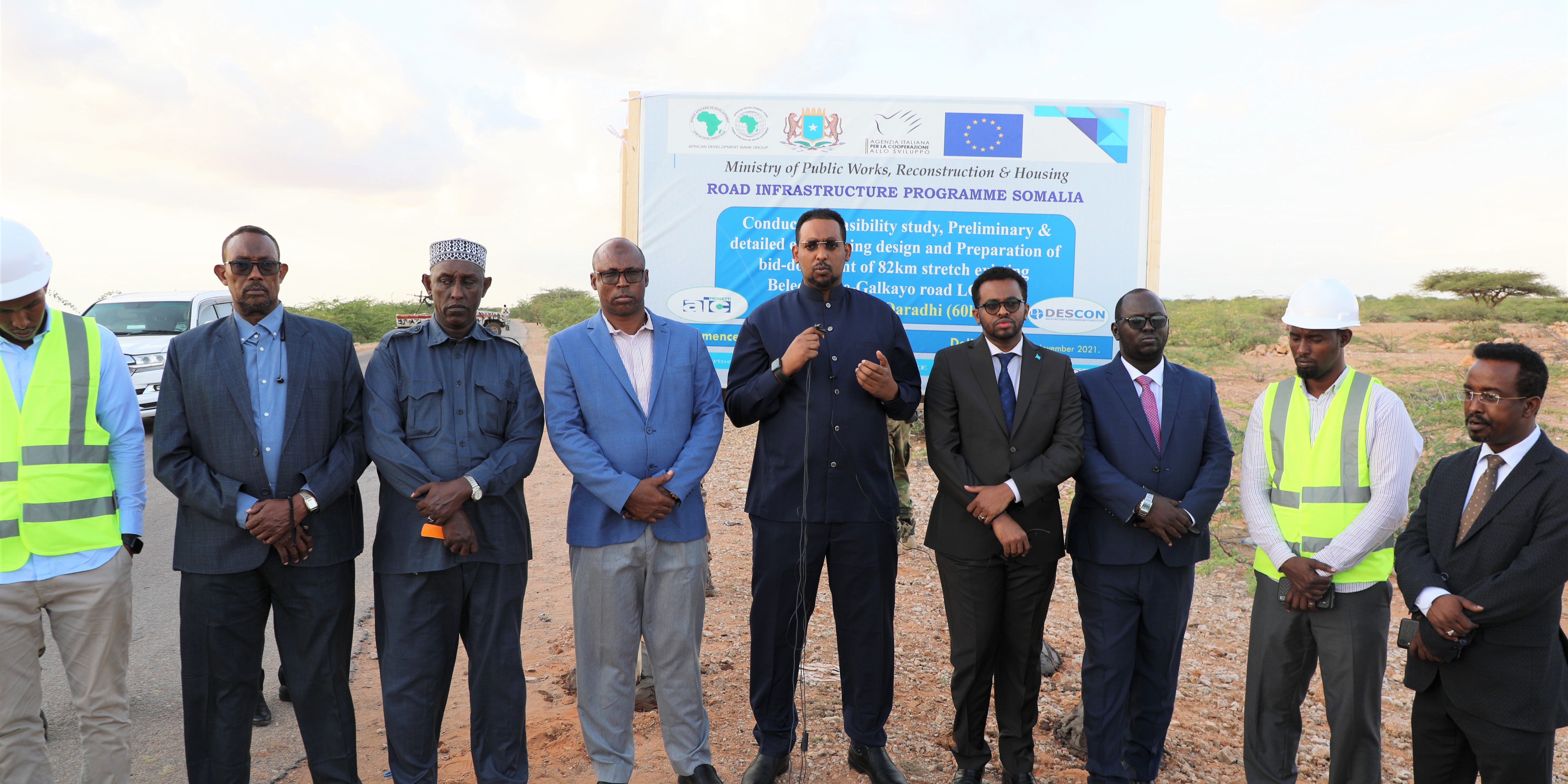 Madaxwayne kuxigeenka Galmudug Mudane Cali Daahir Ciid iyo Wasiirka Hawlaha Guud, Dib u dhiska & Guriyeynta DFS Xil. Maxamed Aadan Macalin (Soomaali) ayaa maanta si wadajir ah u daahfuray diyaarinta daraasadda, Naqshadda dhismo iyo dikumintiga qandaraas bixinta ee Wadooyinka u dhexeeya Dhuusamareeb – Qarandi iyo Beledwayne – Gaalkacayo.